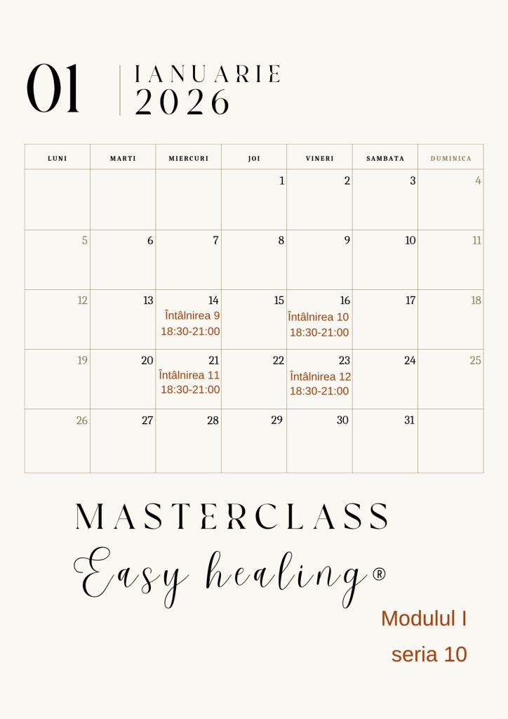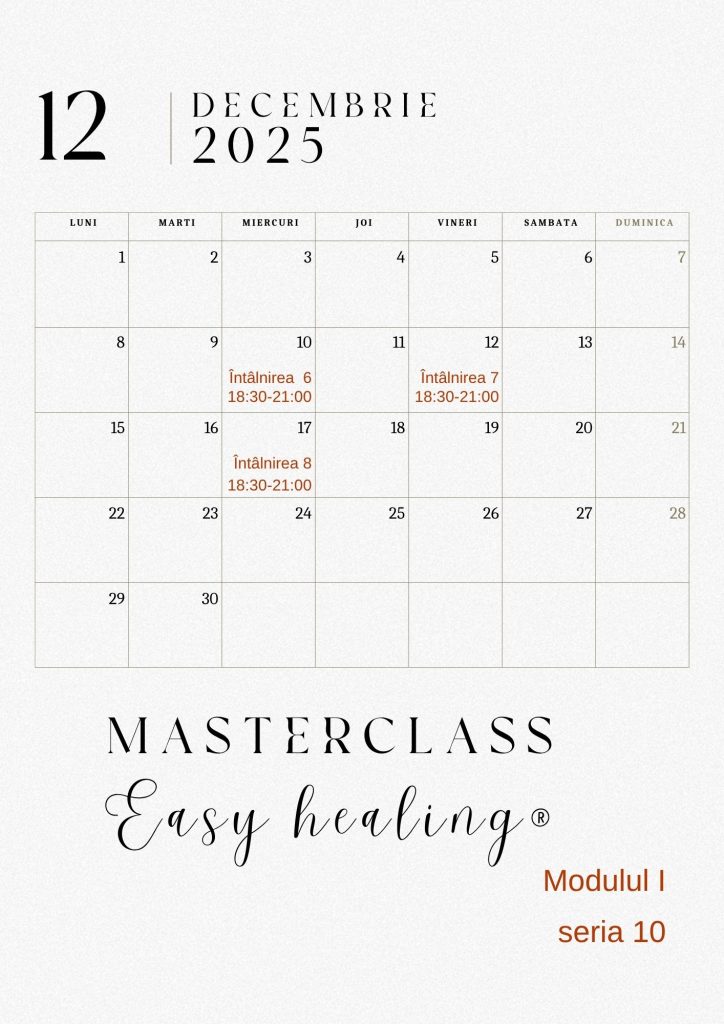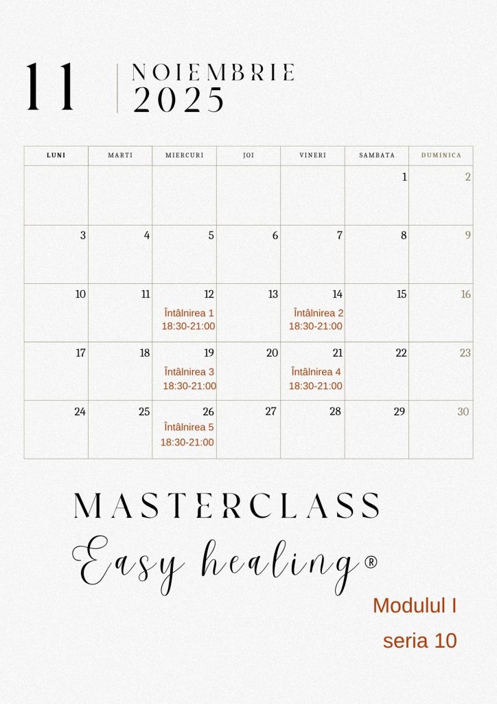 MASTERCLASS ”EASY HEALING®” MODULUL I - seria 10 - ORAR