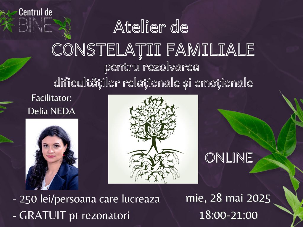 Atelier ONLINE de constelații familiale – miercuri, 28 mai 2025, de la ora 18:00